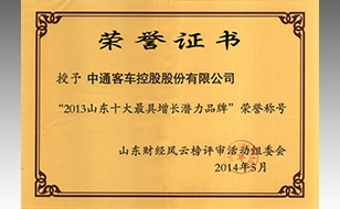 2013山東十大最具增長潛力品牌